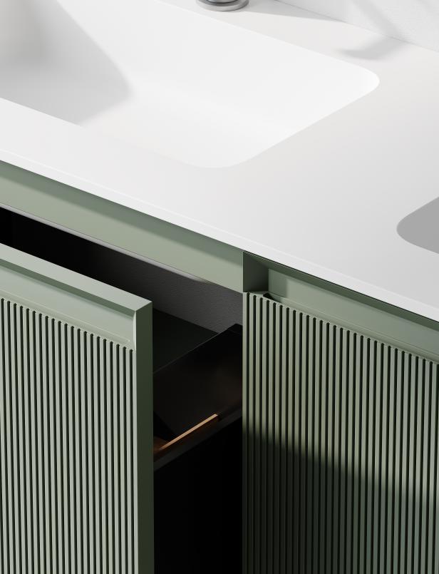 櫃體:基材多層實木,櫃體是進口油漆M-055/M-056/M057。抽屜底部是ICA-004意大利進口金屬漆,櫃體生產不分AB面,看得見和看不見的都一樣,抽屜兩邊均為公司自己開模定製加高金屬抽邦,能更好的增加收納空間,U型擋水為自主開模,定製超薄金屬材質,防水性更好且不易變形櫃體都是按國際標準意大利進口家具一樣分節定製,更加穩固,方便擡換安裝,市面上絕大部分的櫃子是連體的,中間隔板都是單層,一定年限後容易變形。